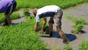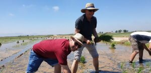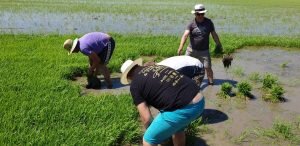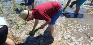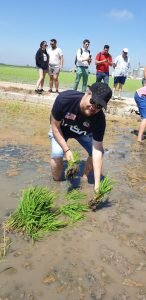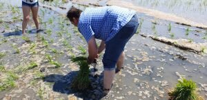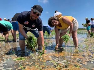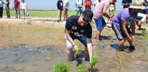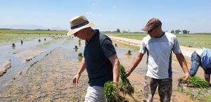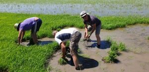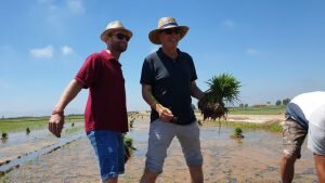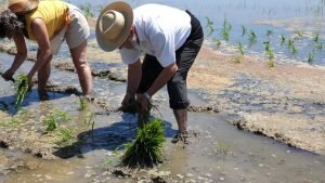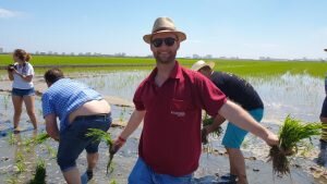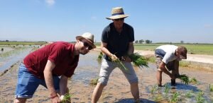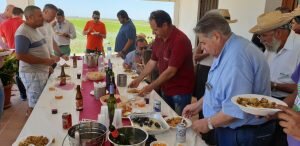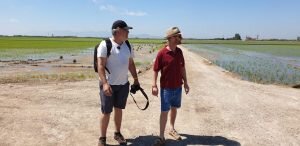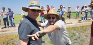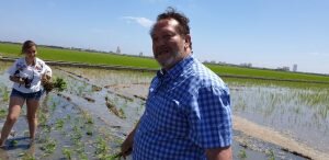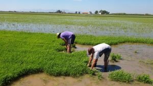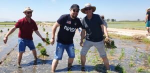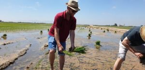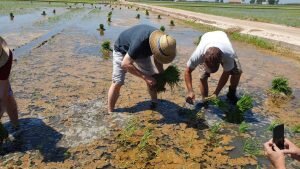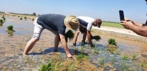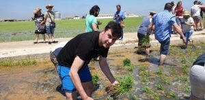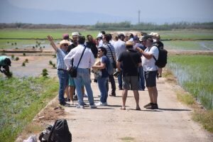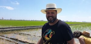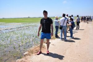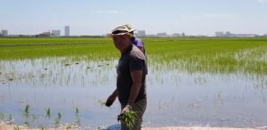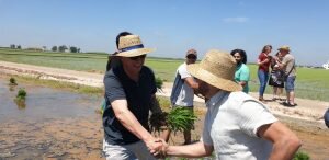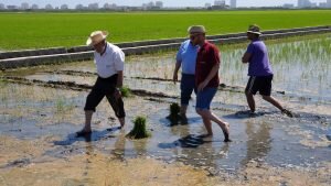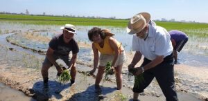 Valencia |Festa de la “Plantà de L’arròs”, Tancat L’Estell, El Palmar, Valencia El Tancat de l’Estell, cuna del arroz Tartana, ha celebrado su fiesta anual de la ‘plantà de l’arròs’presentada porJuan Valero,con la asistencia de cocineros, personalidades del mundo gastronómico valenciano, agricultores del arrozal de la Albufera yJoan Baldovídiputado en el Congreso español por Compromis. La atracción principal de la convocatoria estriba en la demostración del plantado manual del arroz, como se hacía décadas atrás. Ahora se siembra lanzando el grano a voleo y sólo se replantan a mano pequeñas zonas donde no ha germinado bien. Los asistentes tuvieron la oportunidad no sólo de ver cómo se realiza esta tarea ancestral, sino de experimentarla. Muchos no lo dudaron, se arremangaron y, metiéndose en el agua del campo, se aventuraron a colocar los planteles de arroz. Tras disfrutar todos con estas experiencias degustaron una paella de verduras cocinada por el chefJuan Carlos Galvis, acompañado deJosé Zafra.