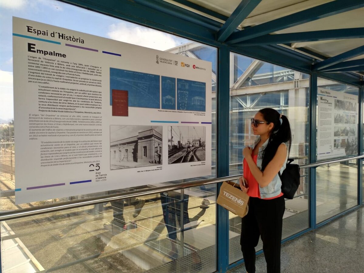 La estación de Empalme y las paradas de Marxalenes, Benimaclet, La Carrasca y Les Arenes recorren a través de estos paneles la historia del trenet y el tranvía, con la reproducción de proyectos originales conservados en el archivo de FGV, fotografías históricas y textos explicativos.