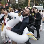Entre las carrozas había algunas de tiempos pasados, como una de la falla municipal infantil de 1968. En algunos de los letreros y carteles que llevaban los grupos de personas disfrazadas se podían leer frases como ‘La societat canvia’ (la sociedad cambia).