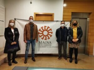 Ayer, viernes día 6 de octubre, a las 19:30h se dieron cita en el Museu d’Arqueològia d’Ontinyent i la Vall d’Albaida las autoridades municipales representadas por el Regidor Coordinador de l’Àrea de Cultura don Alejandro Borrell Bas y don Fernando Gandía Poveda Regidor de Biblioteca, Publicacions, Museus i Casa de Cultura. Por parte de la Germandad del Temple d’Ontinyent estuvieron el presidente saliente don Josep Antoni Alfonso i Díaz y el presidente entrante don Domingo Tormo Vidal.Todos ellos recibieron a la artista plástica especialista en la representación del Santo Cáliz de la Catedral de Valencia la Dra. María Gómez Rodrigo, a la Dra. Ana Mafé García presidenta de la Asociación Cultural El Camino del Santo Grial y de la Comisión Científica Internacional de Estudios del Santo Grial y a doña Esther Santillana Reinoso, responsable del Centro Óptico Losan, única empresa valenciana que hasta la fecha apoya el trabajo de la asociación con fondos y medios.La exposición cuenta con una parte artística creada exprofeso para la celebración del Año Jubilar en Ontinyent por la Dra. María Gómez Rodrigo y una parte conceptual nacida de la tesis de la Dra. Ana Mafé García donde expone parte de las principales aportaciones de su investigación al estado de la cuestión del Santo Grial, el Santo Cáliz.La Dra. María Gómez Rodrigo aragonesa de nacimiento, valenciana de adopción, es una artista que ha forjado su carrera profesional desde la Academia y el saber. Es Licenciada en Bellas Artes por la Universidad Politécnica de Valencia y es Doctora en Bellas Artes por la Universitat de València.Actualmente desarrolla su pasión por la pintura a través de su puesto como profesora titular del Departamento de Historia del Arte de la Universitat de València. También es profesora de Postgrado en el Máster de Patrimonio del Departamento de Historia del Arte.Su trayectoria como restauradora viene desde 1995 cuando es nombrada Técnico en Conservación y Restauración del Patrimonio Mueble de la Catedral de Valencia. Podemos decir que María Gómez en calidad de artista y académica es especialista en el color, en la pintura al fresco, en pintura quemada, en la creación de anamorfosis y en restauración de pintura medieval, escultura en madera y cartapesta.Su formación queda avalada por las innumerables publicaciones y conferencias que ha dado a nivel nacional e internacional. Su obra representa no solo el pálpito de emociones que posee la propia artista, sino que además es reflejo de un saber hacer al alcance de muy pocas personas.Ha creado para Ontinyent una primicia mundial en lo relativo a iconografía cristiana. Desde hace cientos de años el tema de la Sagrada Cena o de la Última Cena viene siendo interpretado desde la mirada patriarcal que ha caracterizado la Historia del Arte.Sin embargo, la temática tan recurrente y manida ha dado paso gracias al talento de la Dra. María Gómez a una nueva formación de un motivo iconográfico que, desde el siglo III de nuestra Era, no volvía a ser interpretado.Se trata de la figura de “mujer que porta un cáliz”. Dentro de los estudios iconológicos auspiciados por el Dr. Panofsky en el siglo pasado, se distingue claramente entre “tema” y “motivo”. El tema que presenta la Dra. María Rodrigo no es nuevo, por el contrario, el motivo sí representa una novedad dentro del panorama pictórico en lo relativo a la composición e iconografía.
