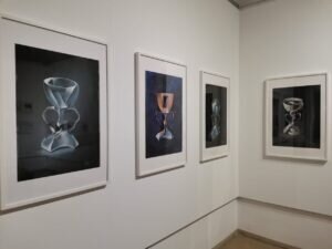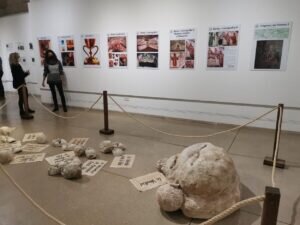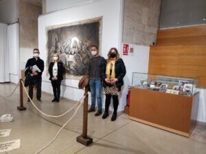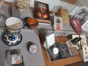 Además, acompaña su magnífico lienzo con una alusión directa a lo que significa el Camino del Santo Grial, Ruta del Conocimiento, camino de la Paz en clave interior. Ha creado una performance a través de la escultura y la palabra que retrotrae al espectador a un mundo íntimo.María Gómez Rodrigo se vuelve única e inimitable mostrando las diferentes miradas que ofrece el Santo Cáliz de la Catedral de Valencia a través de deconstrucciones cubistas y surrealistas. Ahí la autora demuestra una vez más su dominio de los pinceles, de la técnica y de lo que es más importante, su originalidad.La Dra. Mafé por su parte relata todo un compendio de información inédita en forma de imágenes para que quien recepciona la exposición pueda leer fácilmente el significado de las conclusiones más reveladoras sobre la historia del Santo Grial, el Santo Cáliz de la Catedral de Valencia. Es un pequeño homenaje al investigador padre de la iconología, el Dr. Warburg quien pretendía realizar un atlas del conocimiento solo a través de imágenes.En las diferentes vitrinas se pueden observar dos temáticas bien distintas. Una relacionada directamente con la pieza del Santo Grial. La reproducción del Santo Cáliz elaborada por Orfebres Piró de Valencia capta la atención de inmediato. A su alrededor se encuentra una verdadera colección de pequeñas copas talladas en ágata, cornalina sardónice, jaspe rojo e incluso ónice que, bien merece la pena ver.La otra vitrina presenta innumerables elementos relacionados con la historia del Santo Grial. Desde una reproducción del capitel de San Sixto II y San Lorenzo de la Catedral de Jaca, pasando por una reproducción en cerámica de Armenia de Jerusalén de la “Copa de Elías” hebrea, una reproducción de un siclo hebreo en donde ya figura una copa en su reverso, pequeñas colecciones numismáticas donde se refleja la figura del Santo Cáliz, una credencial de peregrino del I Año Jubilar sellada desde San Juan de la Peña, publicaciones de hace más de cien años y las más recientes, la cruz y algunas de las publicaciones que realiza la Cofradía del Santo Cáliz de la Catedral de Valencia.En conjunto se trata de la primera exposición relacionada con el Año Jubilar y que posiciona a Ontinyent como lugar de peregrinación cultural. Una muestra única que no dejará indiferente a nadie. No te la pierdas.