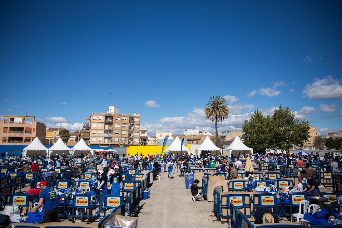 El Dacsa Stadium, ubicado en la localidad de Almàssera, acogió ayer a los 120equiposparticipantes de esta nueva edición de la Liga Dacsa. La empresaArroz Dacsaentregó a cada uno su “welcome kit”, que incluye un delantal, una cuchara de madera, un paquete de arroz Dacsa, un encendedor de cocina y pastillas de encendido y leña. El resto de ingredientes para cocinar la paella así como la técnica empleada y la receta según la zona de zona geográfica o tradición la escogía cada equipo.