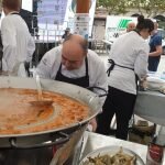 La plaza del Ayuntamiento ha acogido degustaciones gratuitas –con posibilidad de donativo a Casa Caridad– de 15 variedades de paella y arroces llegadas de las tres provincias de la Comunitat, realizadas por chefs de las tres provincias.