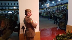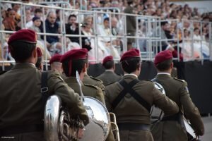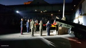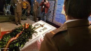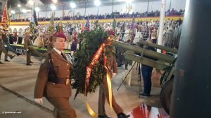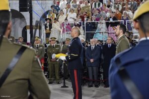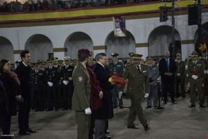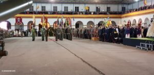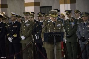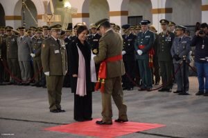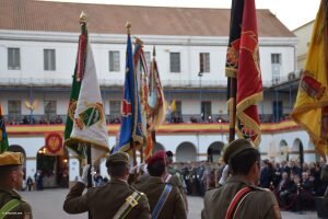La Bandera Nacional que ha presidido el acto ha sido arriada y entregada este año al Colegio “La Salle” de Paterna, como gesto de hermanamiento entre las Fuerzas Armadas y la sociedad valenciana.